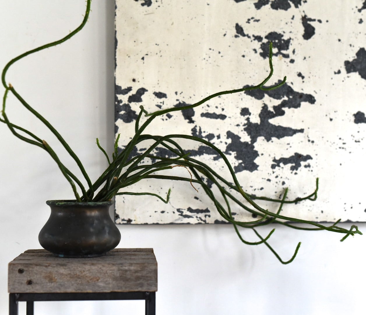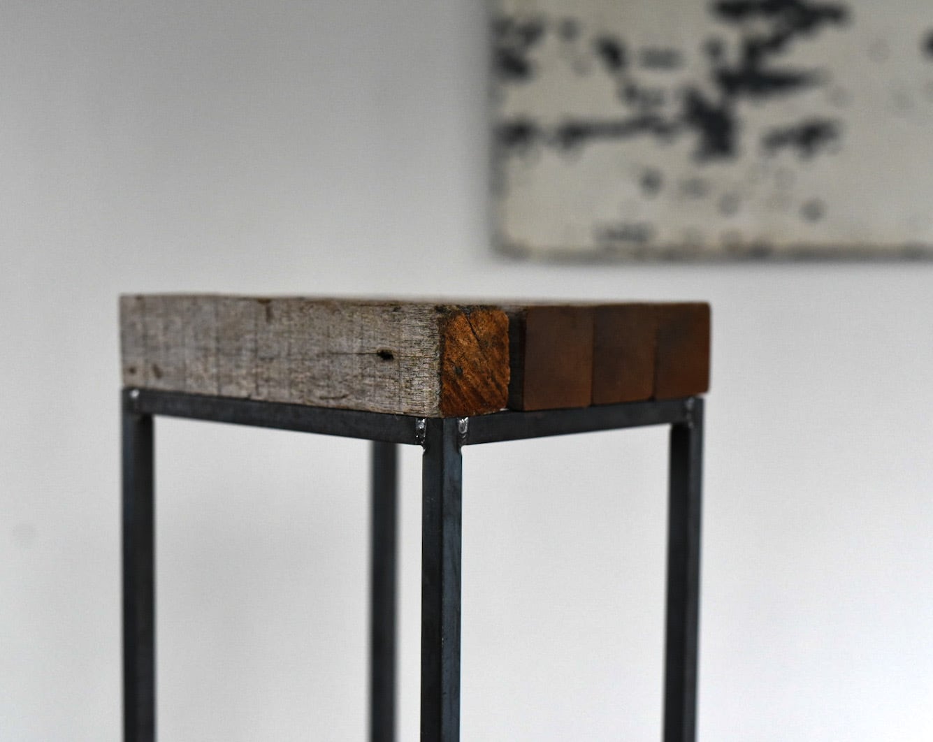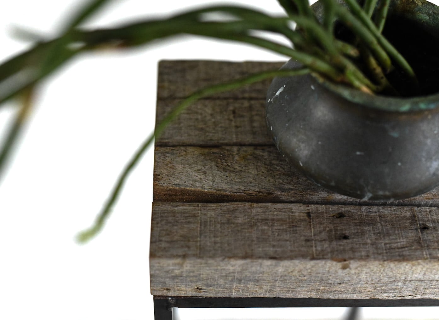 沖縄の太陽と雨風にさらされて経年変化した木材と、鉄の角鋼を1点1点溶接して仕上げたフレームをディスプレイ台に仕立てました.