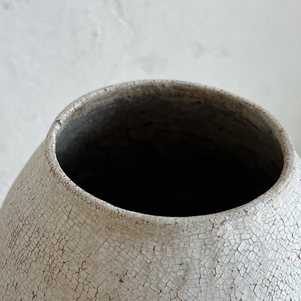 沖縄本島の恩納村で出土される白い土を練り込んだ背の高い花器.