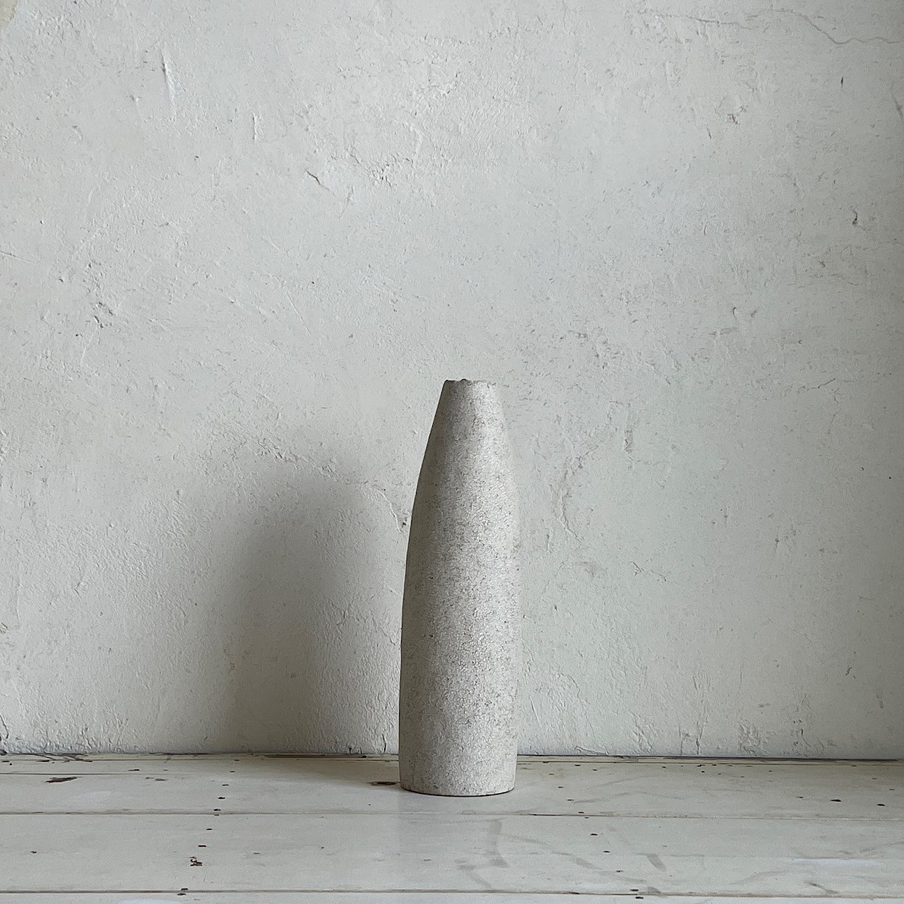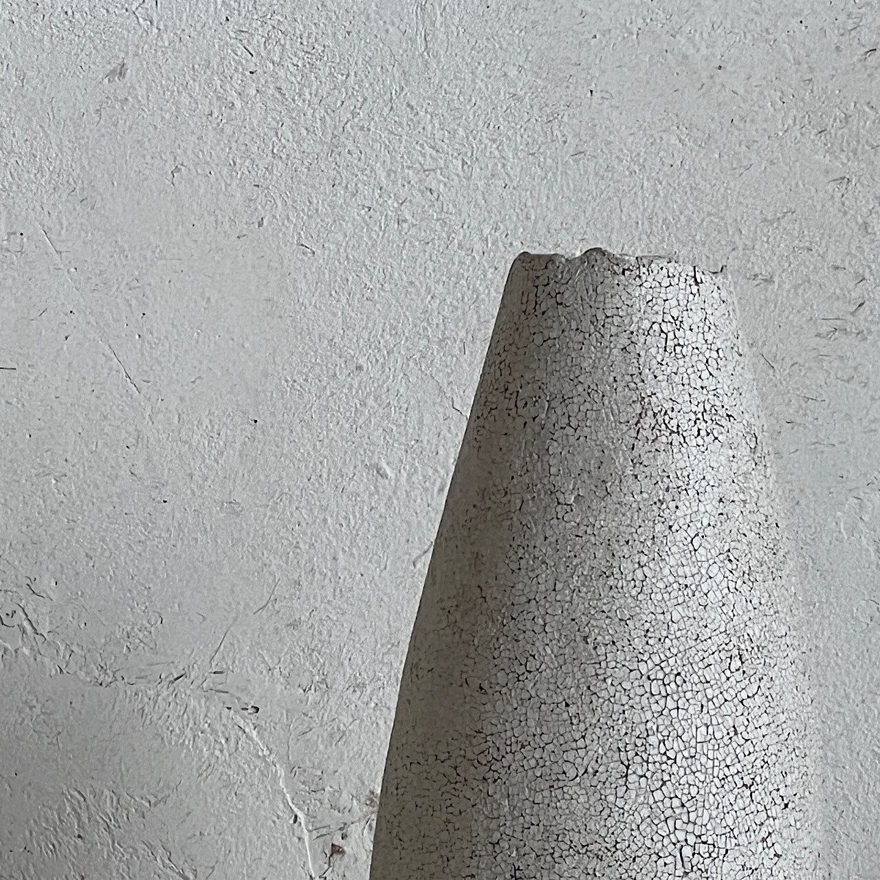 沖縄本島の恩納村で出土される白い土を練り込んだ背の高い花器.
