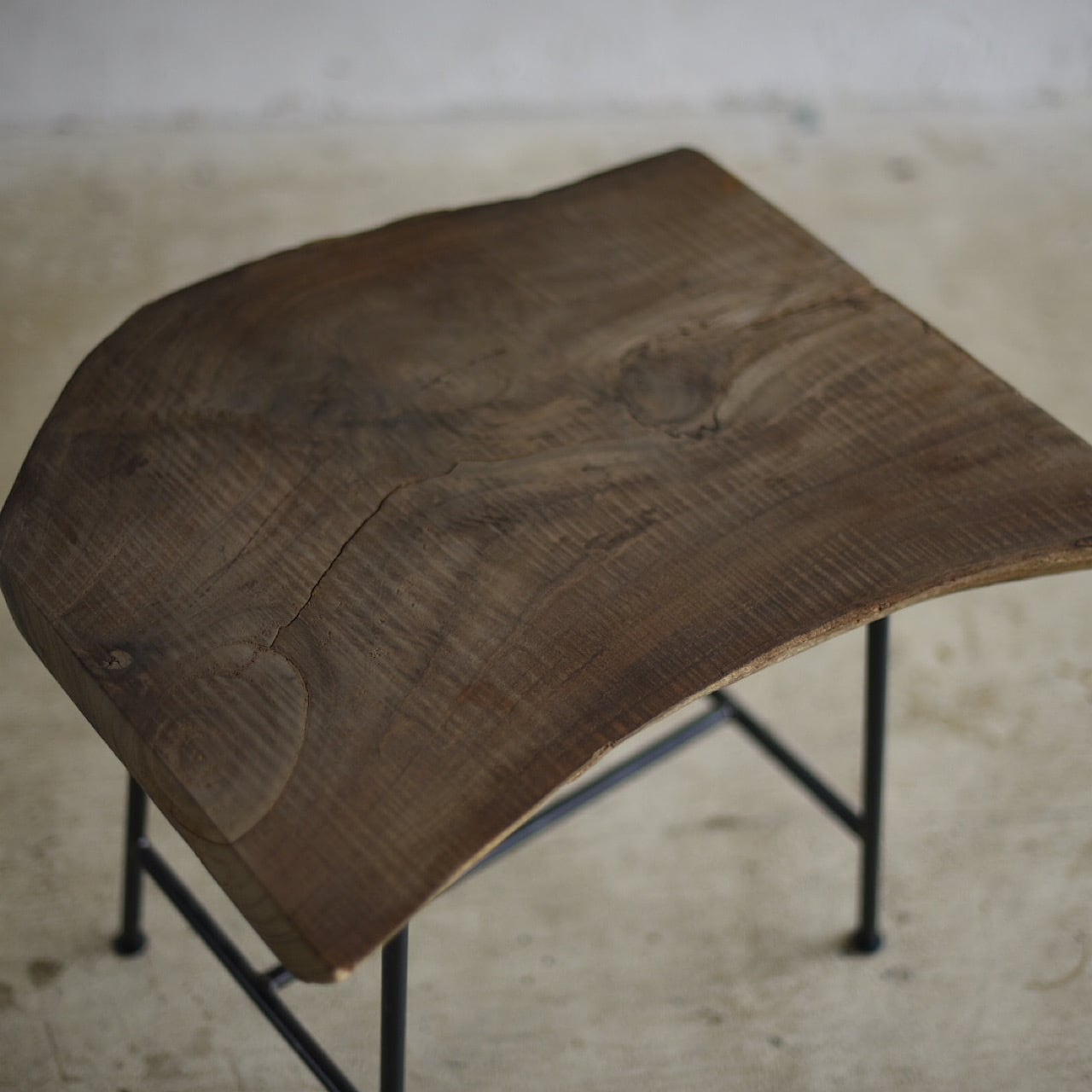 木の自然な流れを生かし鉄媒染で表面を黒褐色に染めて、お使いいただくほどに深みと艶が増していきます.お気に入りの一脚にぜひ.